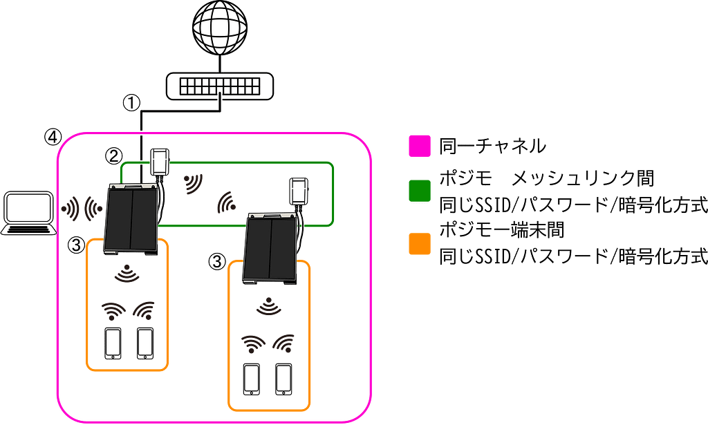 また、ポジモのネットワークはすべて同一チャネル内で行う必要があります。